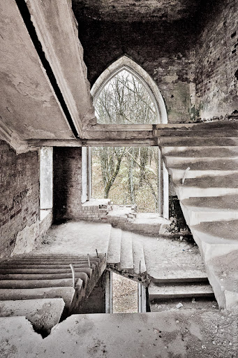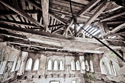 Вначале я решил, что это было что-то типа внутреннего дворика, но, приглядевшись, увидел остатки следов перекрытий между этажами.