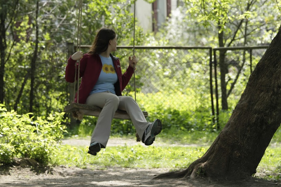 Рядом с речкой очень симпатичный тибетский скверик, где можно покататься на качелях. Не особо ясно, какое он имеет отношение к Тибету, но будем верить.