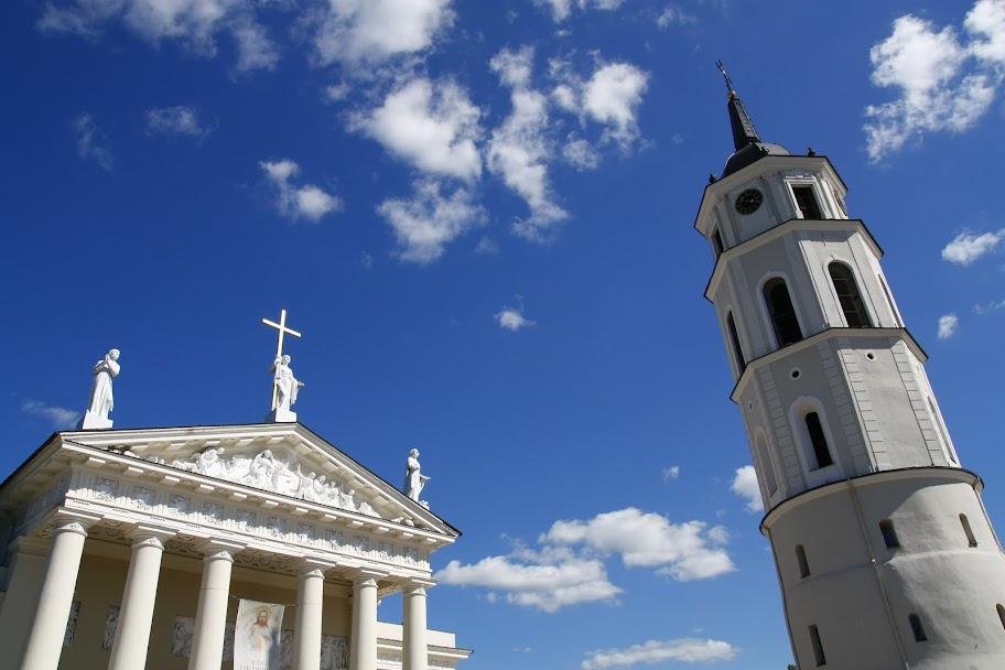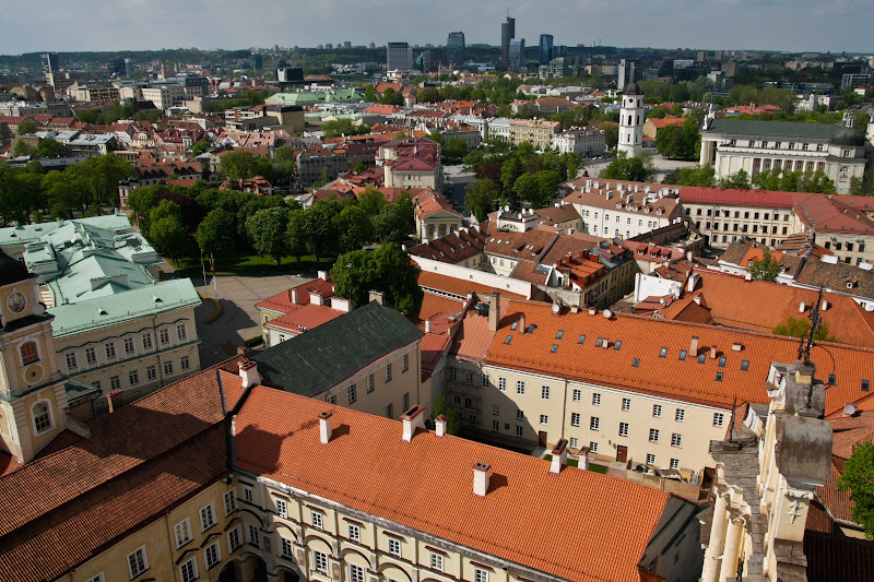 Из-за чего это место стоит посетить, так это из-за колокольни. С нее открывается прекрасный вид на город, на мой взгляд гораздо лучше, чем с популярной башни Гедиминаса. Кроме того, прямо рядом президентский дворец в прицельной видимости - можно поглядеть, как местные президенты-премьер-министры выходят на перекур на обед.