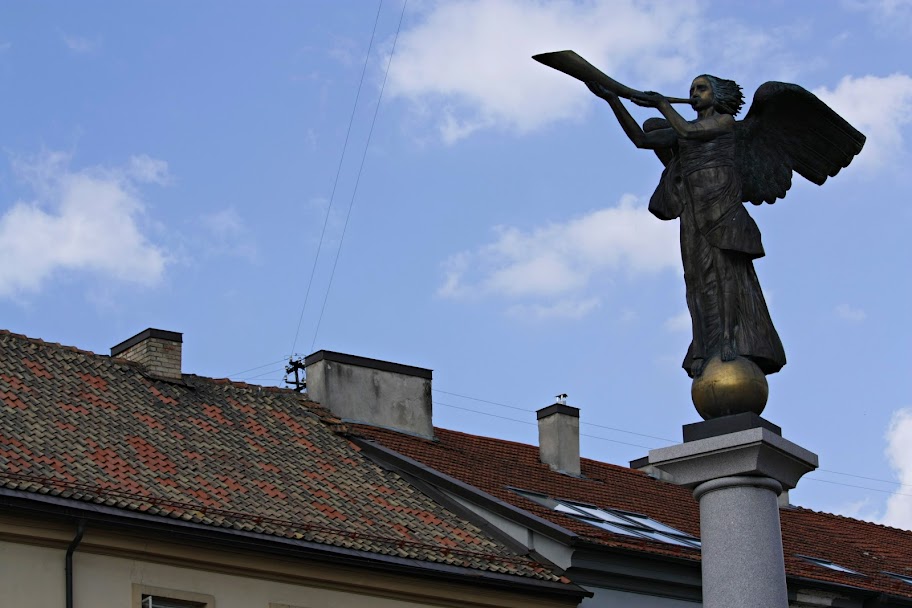 Символом Ужуписа является ангел, который построили за свои деньги на месте огромного яйца.