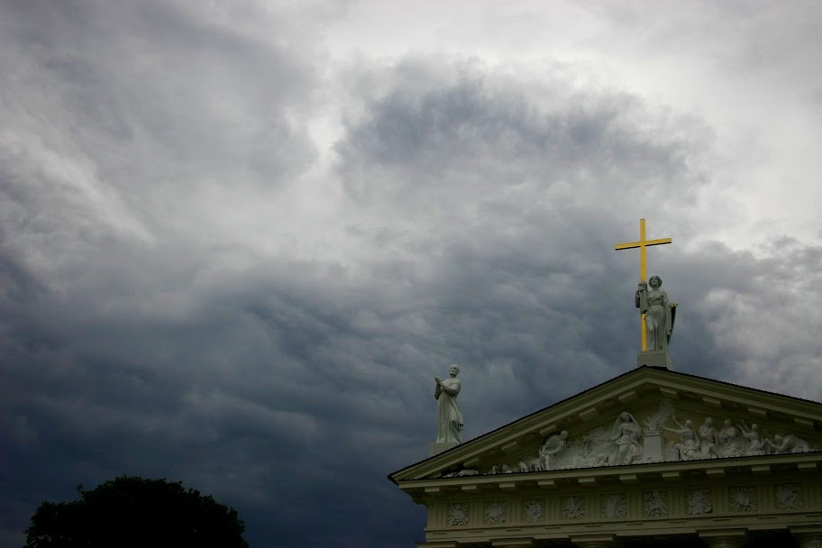 Все путеводители как один будут тянуть в Старый Город смотреть на соборы. В этом они безусловно правы, потому что церквей и соборов в Вильнюсе очень много. C высоты хорошо видно торчащие остроконечные пики, показывающиеся в самых неожиданных местах. По церквям и соборам можно сделать отдельный путеводитель - на википедии даже есть отдельный раздел "Храмы Вильнюса", но т.к. мы не особые поклонники посещения церквей, то перечислим только несколько запомнившихся: